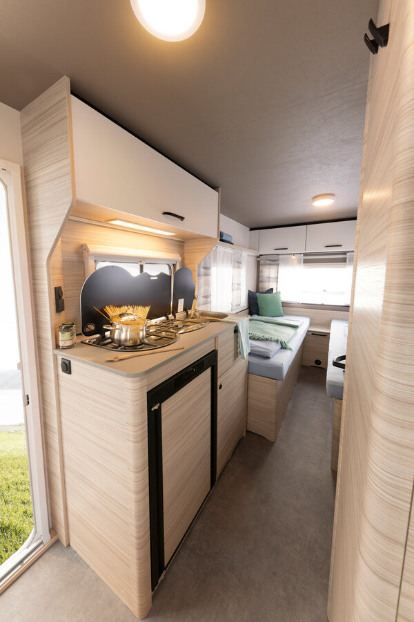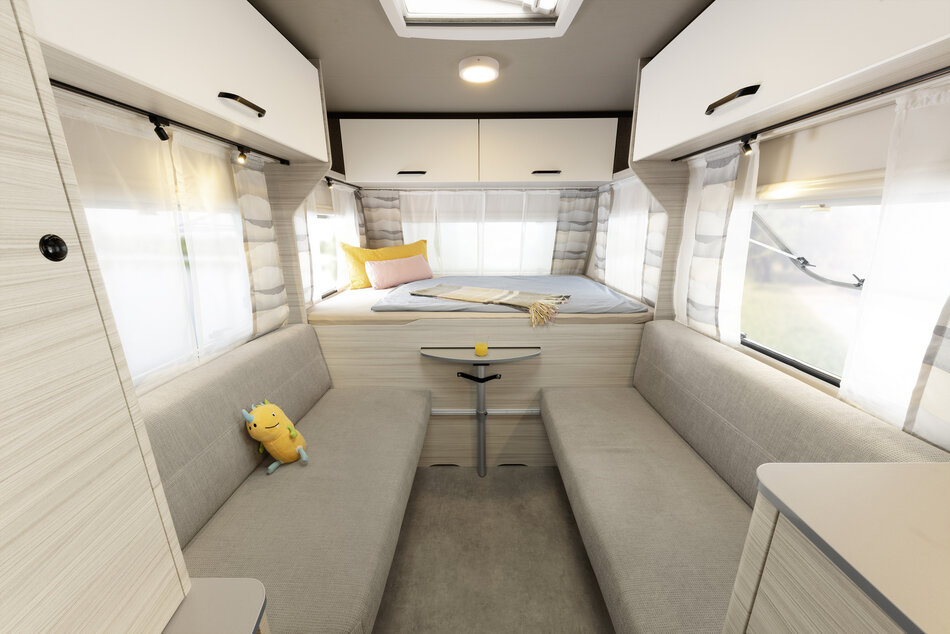 U trekt er moeiteloos op uit met uw C'joy 420 QLK Active, genietend van de vrijheid die een lichtgewicht caravan biedt. Na een dag vol ontdekkingen komt u "thuis" in uw comfortabele caravan, waar u in de ruime keuken een lekkere maaltijd bereidt en deze vervolgens in alle rust nuttigt. 's Avonds geniet u van een goede nachtrust in het comfortabele dwarsbed, klaar voor nieuwe avonturen de volgende dag.