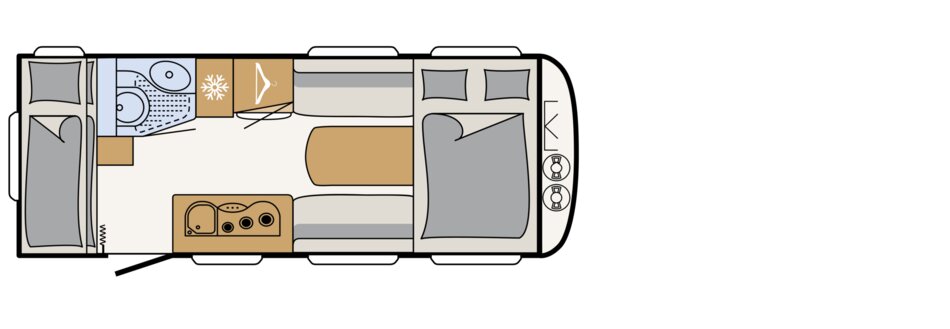 - Slimme Badkamer: De compacte maar doordachte badkamer biedt een toilet, wastafel en douchegelegenheid (optie), waardoor je ook onderweg van alle gemakken bent voorzien.
