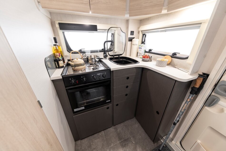 De Xplore XC Duo is ontworpen met jouw comfort in gedachten. Het grote dakluik zorgt voor een heerlijke lichtinval en optimale ventilatie, terwijl de extra dakventilator op warme dagen een aangenaam klimaat garandeert. En voor extra gemak onderweg is deze caravan uitgerust met een handige magnetron om snel en eenvoudig maaltijden op te warmen.