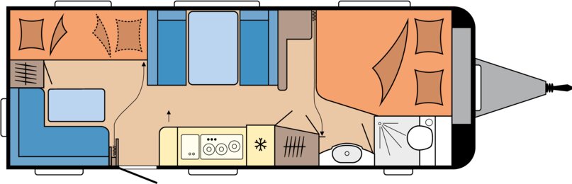 Tien indelingen, waarvan vier met kinderenbedden, bieden ruimte voor uiteenlopende wensen. In sommige modellen zijn er zelfs zitgroepen voor kleine kinderen. Zo kunnen ze hun kleur- en knutselspullen ook eens laten liggen.