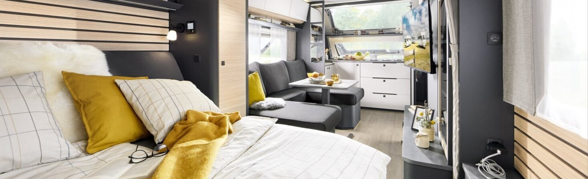 Groot, groter, gigantisch: met tot wel 20 m² is de MAXIA net een vakantieappartement op wielen. Eenpersoonsbedden of vrijstaand queensbed: in deze luxe caravan blijft geen wens onvervuld. Royale wasruimten en qua kleur op elkaar afgestemde woon- en slaapgedeelten maken de premiumcaravan perfect.