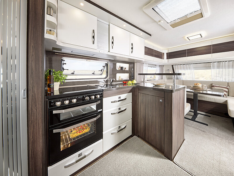 Vergeet kleine caravan-keukentjes! De 620 CL is uitgerust met een meesterwerk van functionaliteit en design: