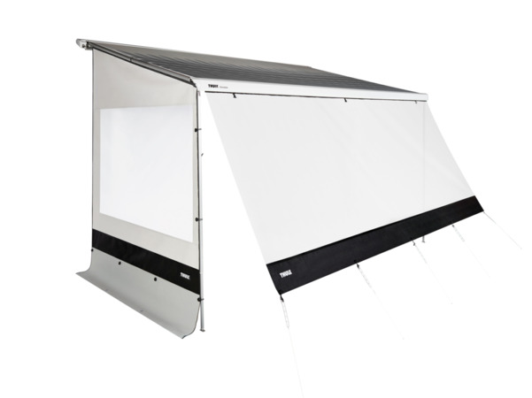 Tijdens uw vakantie is het fijn om naast uw voertuig uit rusten in de schaduw. In dat geval biedt een dakluifel uitkomst. De Thule Omnistor dakluifel 6300 voor de caravan of camper is verkrijgbaar in 9 lengtes tussen 2,60 m en 5 m, met een maximum uitval van 2,50 m. De cassette van dit model is verkrijgbaar in de kleuren wit, aluminium en antraciet, en het doek in de trendy kleuren Mystic Grey en Sapphire Blue. De knikarmen van de Omnistor 6300 zijn zeer stevig: ze zijn uitgerust met geïntegreerde spanarmen, waardoor het luifeldoek perfect op te spannen is. Ook bieden ze een hogere windweerstand. De voorlijst is voorzien van een geïntegreerde aansluiting, zodat u er een optionele derde steunpoot op aan kunt sluiten voor nog meer stabiliteit. Het pvc-doek bestaat uit 5 lagen en is uv-bestendig, waterdicht, afwasbaar, duurzaam en krasbestendig.
