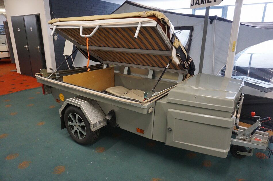 Zambezi River lodge Crossroad in zeer goede staat. Stoere kunststof wagen met enorm veel bergruimte, eenvoudig op te zetten. Luxe keuken op de dissel met 3 pits gas en koelkist. inritsbaar kuipzeil. Grote boogluifel met windhoeken en voorwand. Prachtig panorama dak met hor.