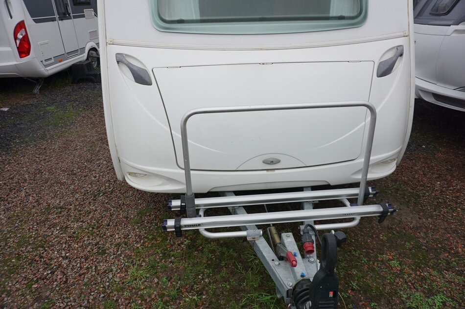 Prima onderhouden compacte gezinscaravan voorzien van fietsendrager voor en achter,caravanmover, incl.z.g.a.n.Dorema voortent en Thule zakluifel.