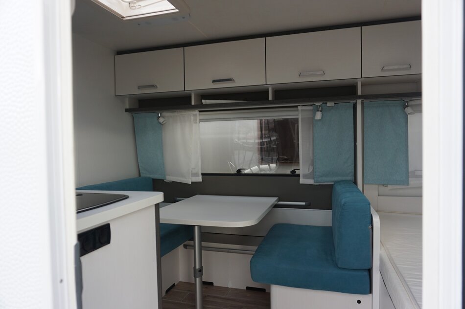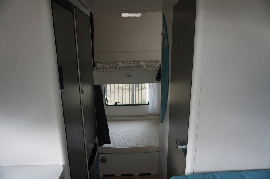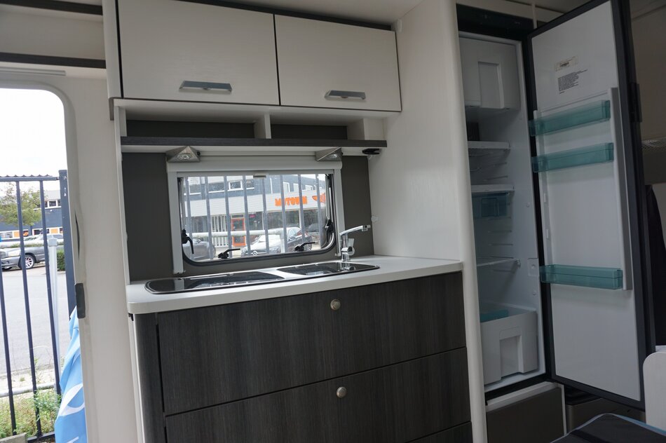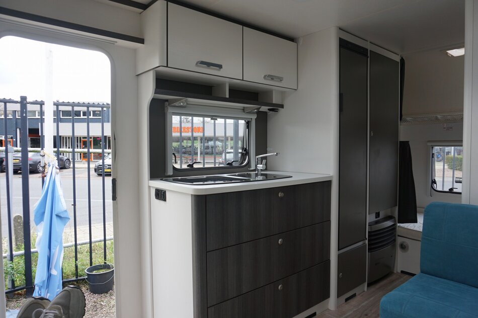 Goed onderhouden lichtgewicht gezinscaravan met raintstapelbed. Ruime zit. Luxe keuken met brede lades hoge koelkast. Comfortabel bedden op lattenbodem. Railzak luifel.