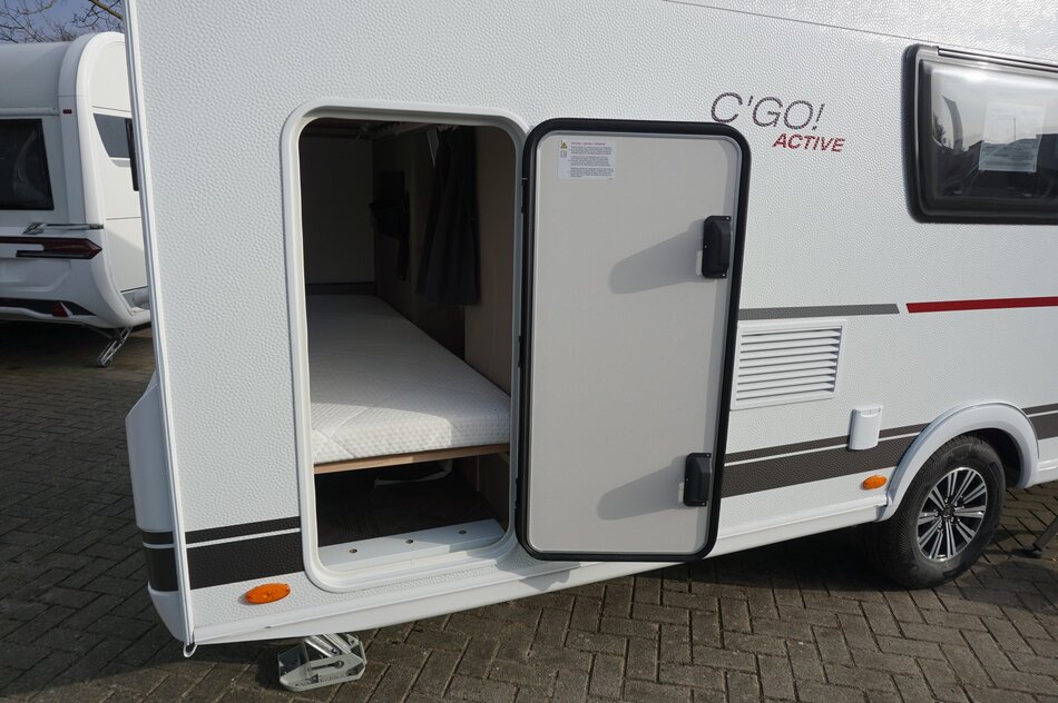 Nieuwe Dethleffs C'Go 495 QSK Active 2026 met stapelbed. Ruime zit. Luxe keuken met grote lades en 142 Ltr koelkast. Comfortabel slapen op de 7 zone matras. Anti hageldak. 1700 kg as te verlagen naar 1600, 1500, 1400 kg. Stabielsteunen met bigfoots. Hordeur.