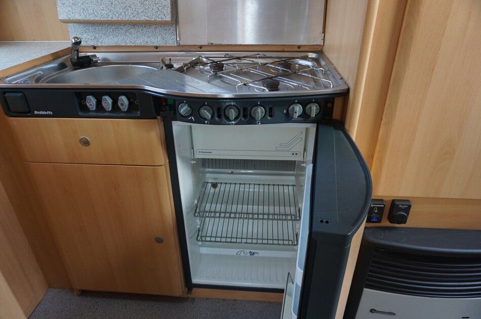 Leuke licht gewicht Dethleffs 395 HK. Ruime rondzit, Extra ruime hoekkeuken met breed werkblad en grote koelkast.Caravan mover.Voortent,fietsendrager voor.