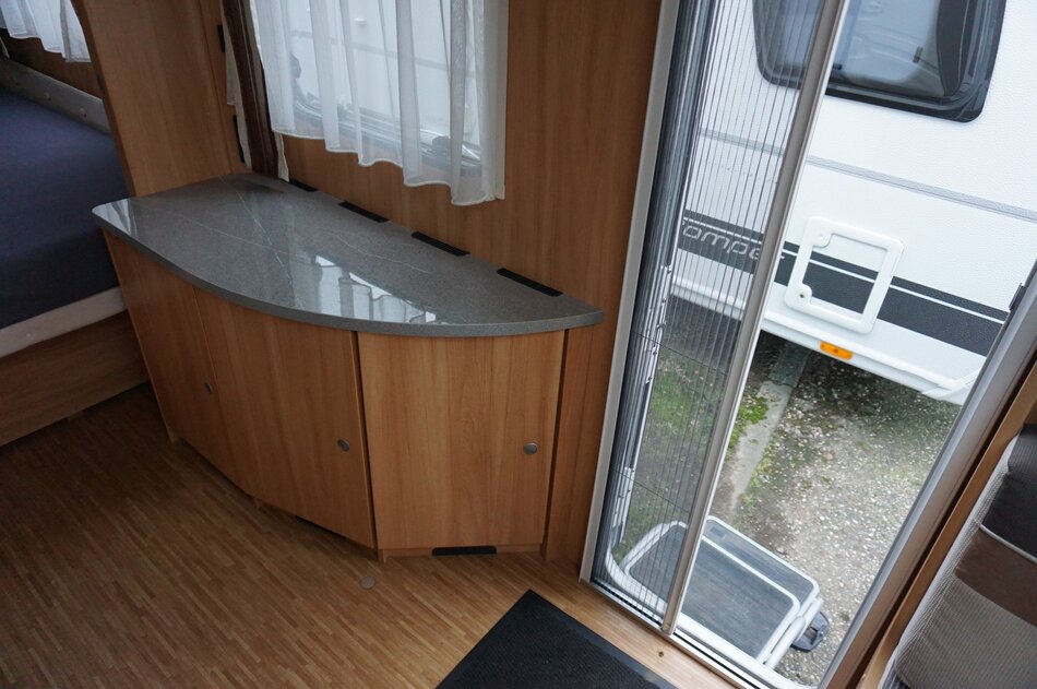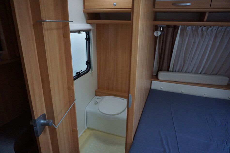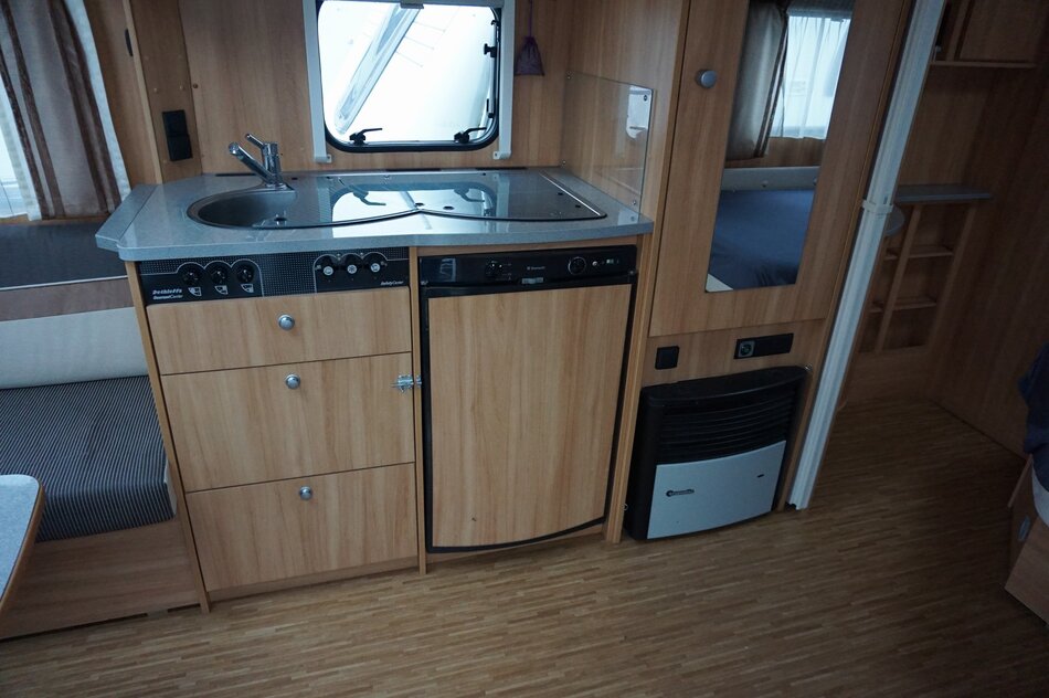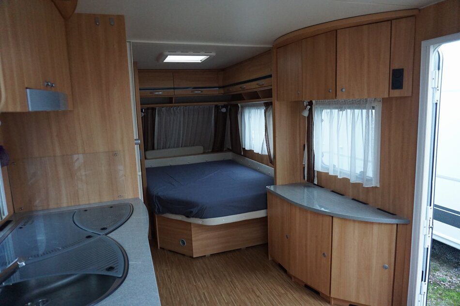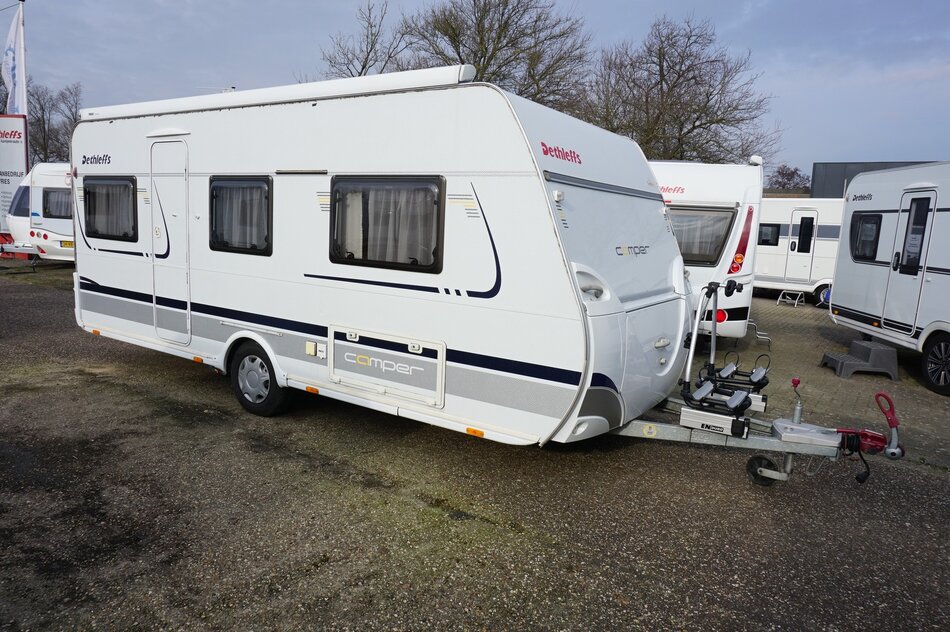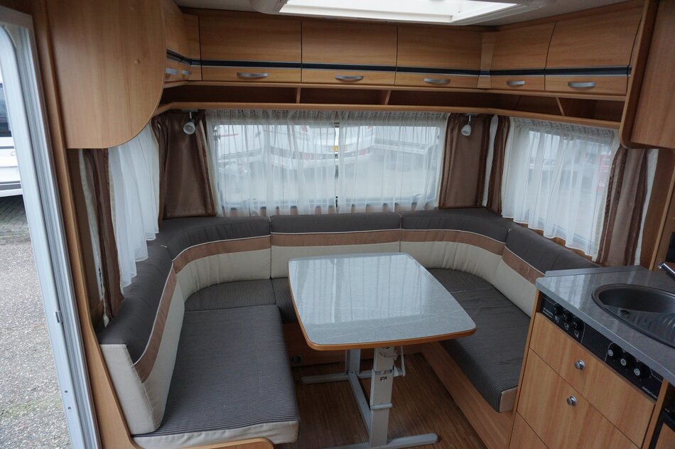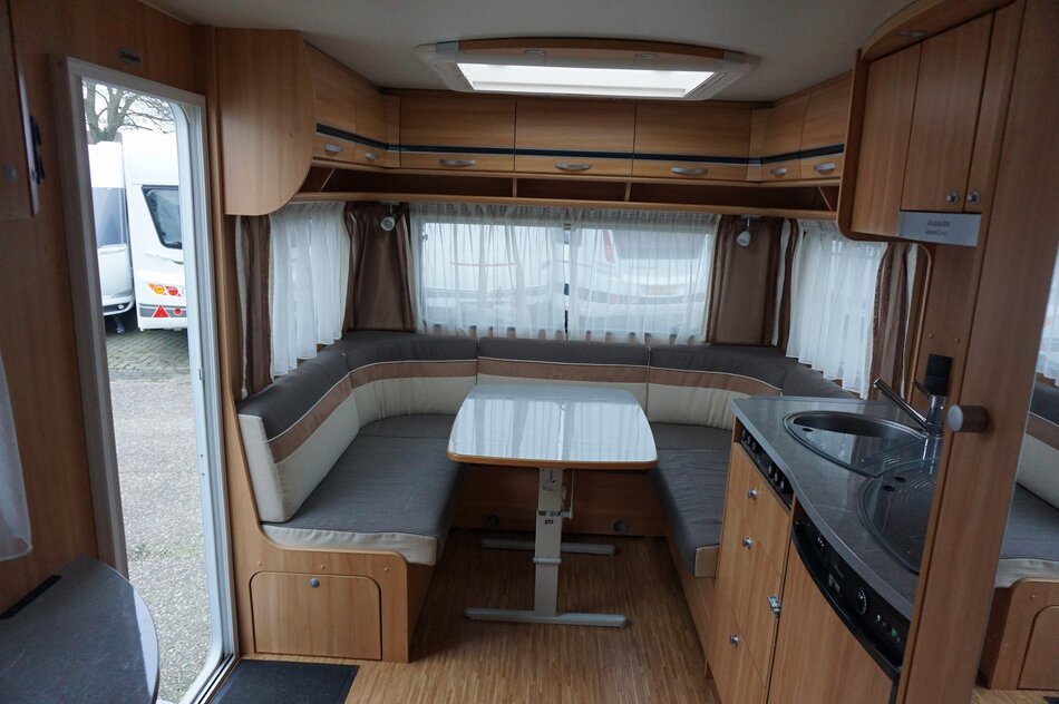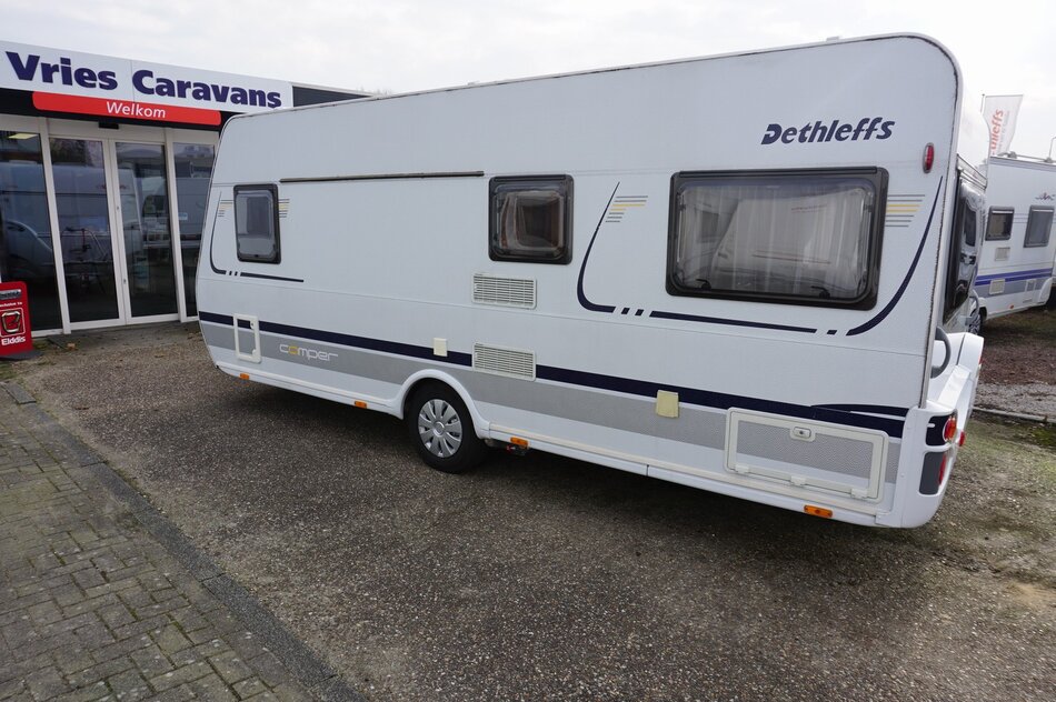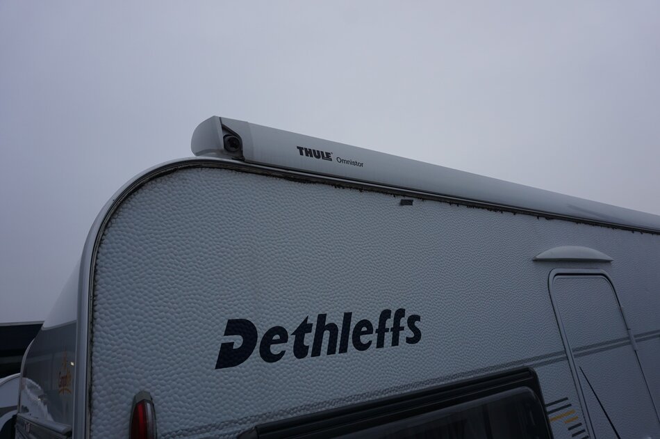 Dethleffs Camper 500DB, In uitstekende staat van onderhoud, ruime, kwalitatieve gezinscaravan, met tweepersoons Frans bed (DB) en rondzitgroep.