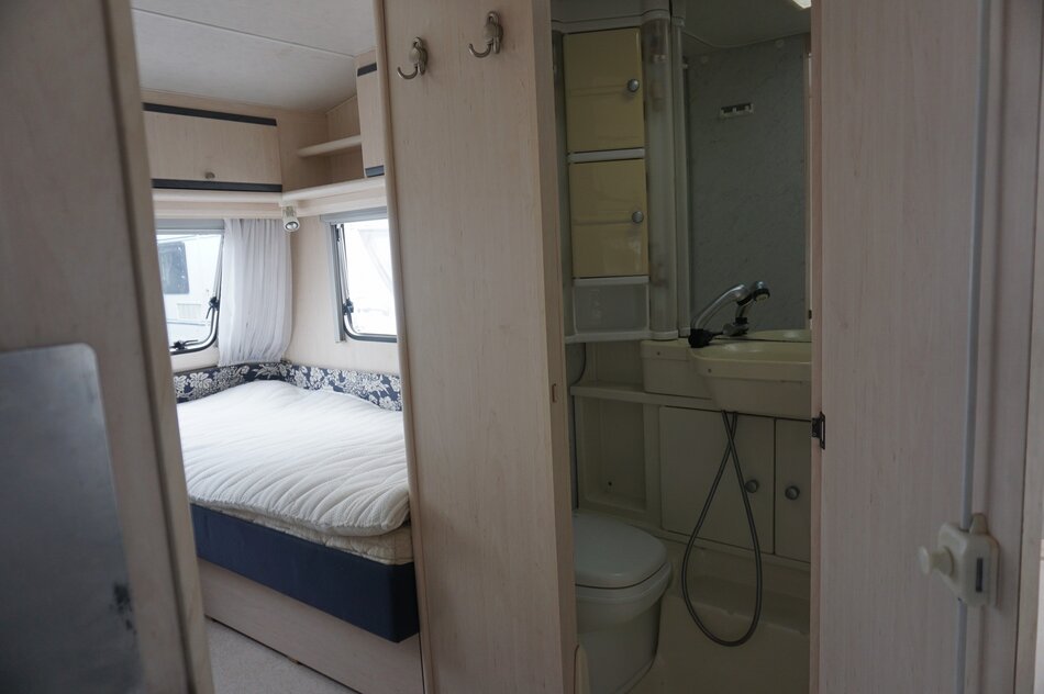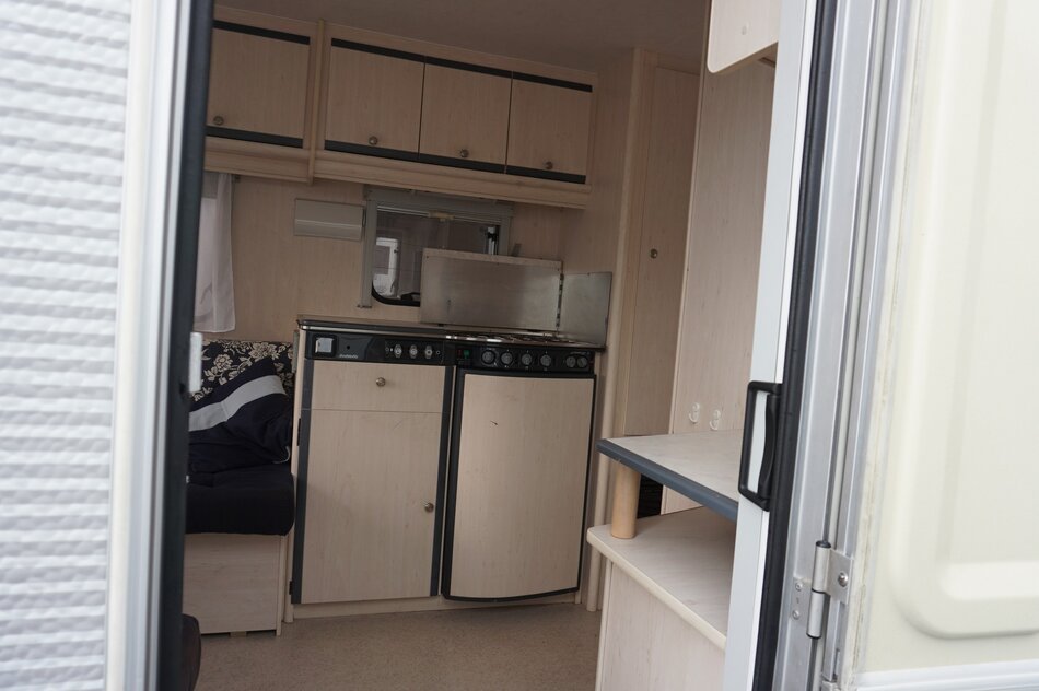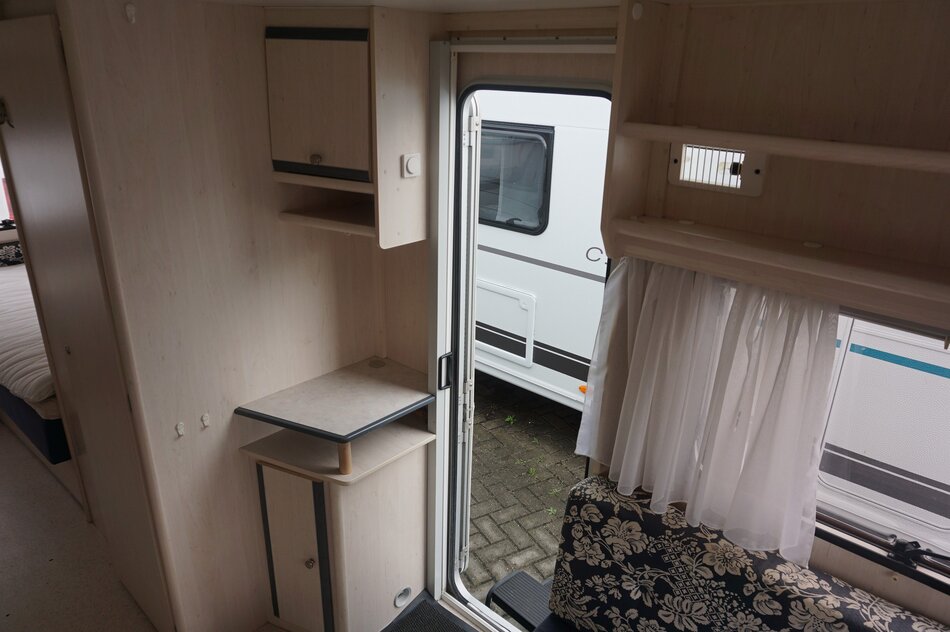 Ruime lichtgewicht caravan met 2 enkele bedden, veel kastruimte, incl. i.n.st. voortent Dorema President XL 300 met uitbouw en Locarno luifel.