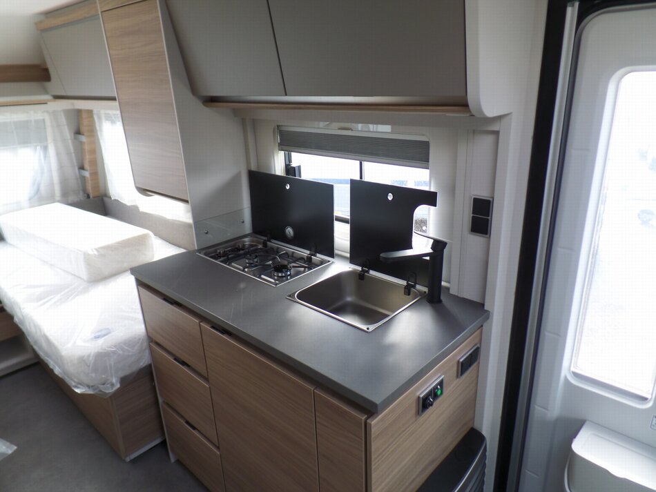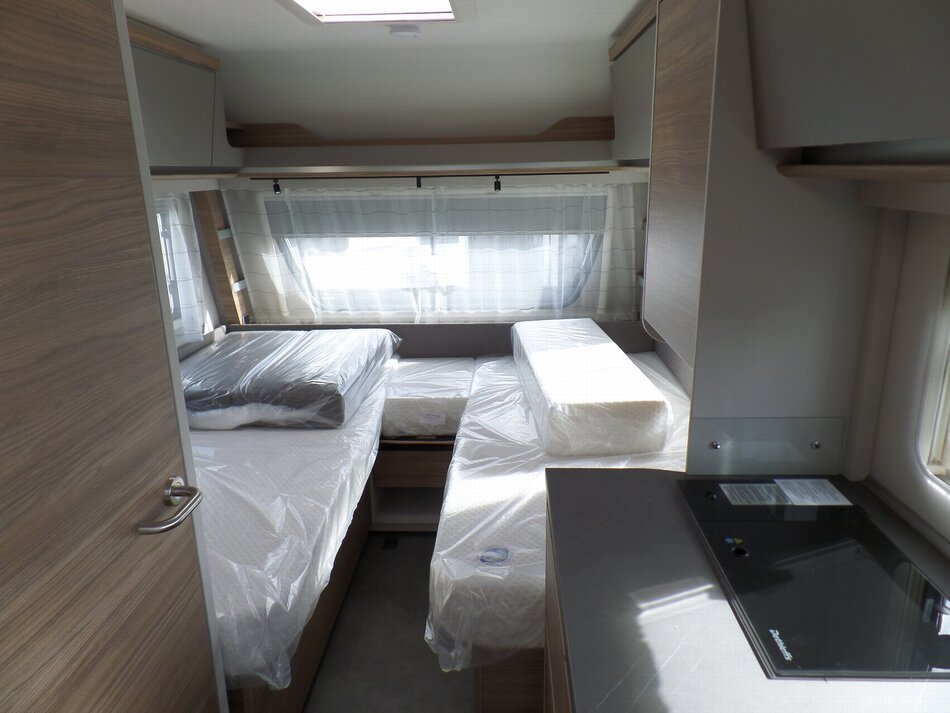 Basisprijs voor deze caravan is: € 31.490,-. Dit getoonde model is uitgevoerd met de volgende opties: Voorraam en First Edition-pakket waaronder: Aslastverhoging 1700 kg ipv 1500 kg, LM 17"velgen, Gladde beplating wit, Inlegramen, Bedombouw, Douche-uitrusting, City wateraansluiting, Duocontrol met Crashsensor, Buitenstopcontact, TV beugel, ATC trailer control en Vloerverwarming.