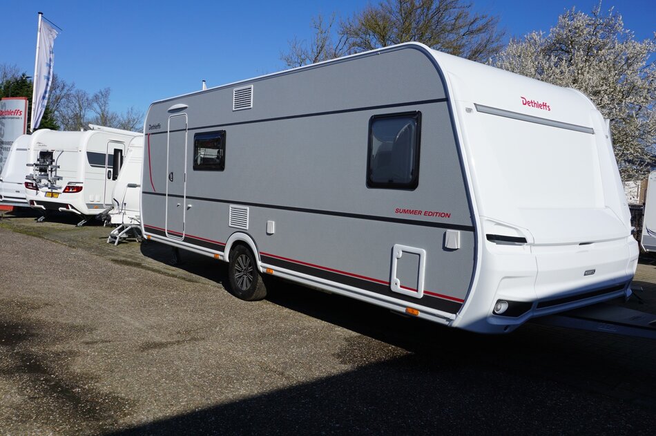 De Dethleffs 560 FMK Summer Edition 2026 is een riante gezinscaravan voor 6 personen. Dit model is voorzien van een "Summer Edition"-pakket,w.o. chique grijze beplating, lichtmetalen velgen, 7-zone matrassen, stapelbed en airco.