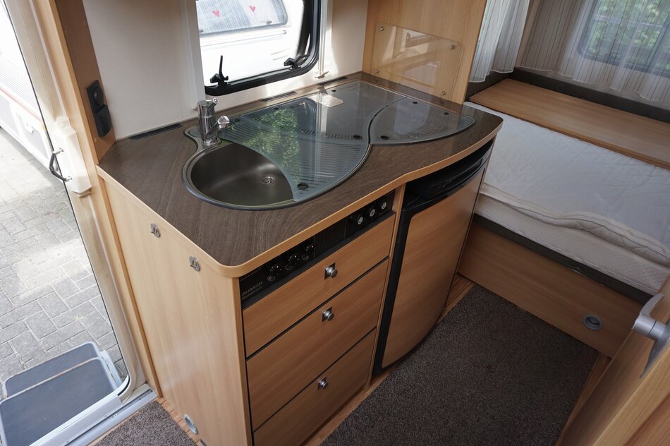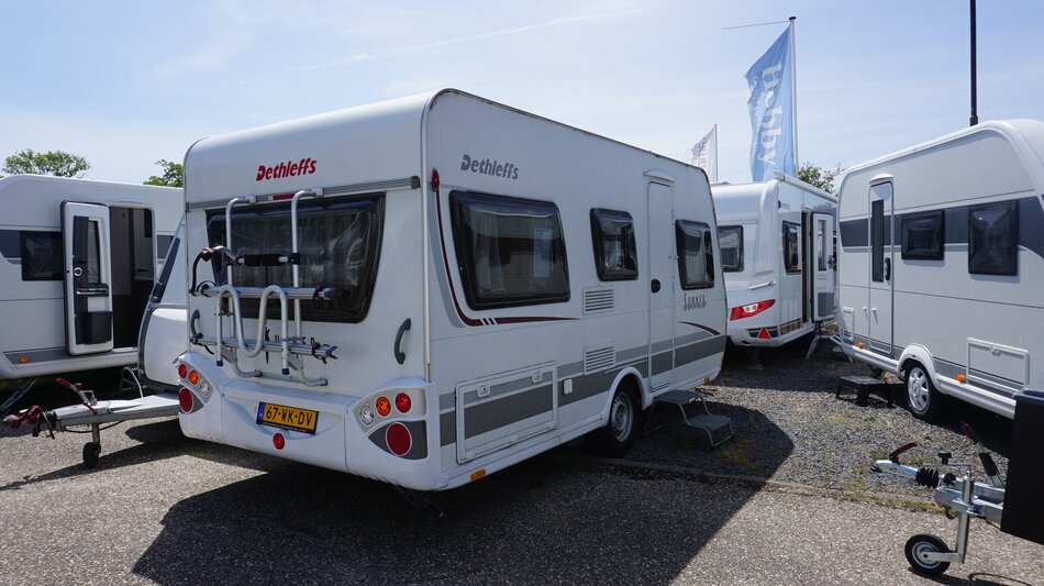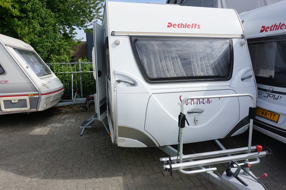 Goed onderhouden lichtgewicht Dtehleffs Summer Edition 430 RQ. Ronzit, ruime keuken, comfortabel bed achter. Compleet met Caravan mover, fietsendrager en Panorama luifel.