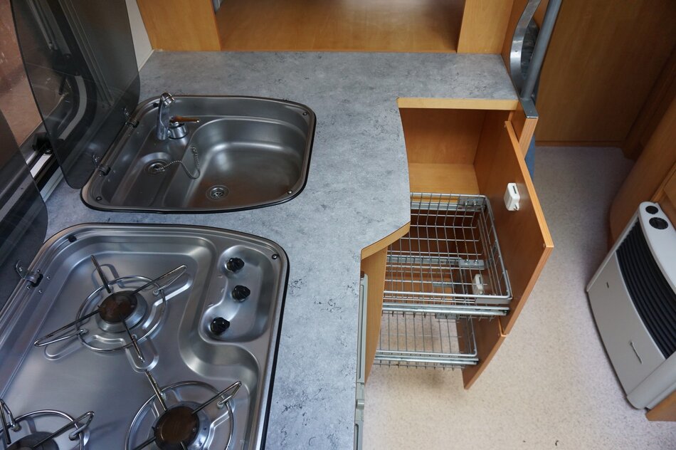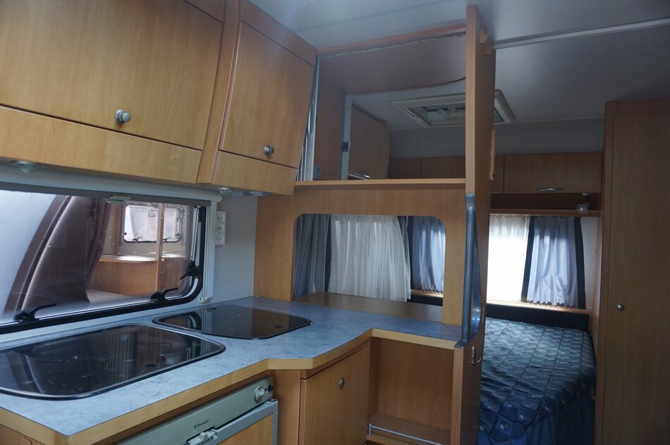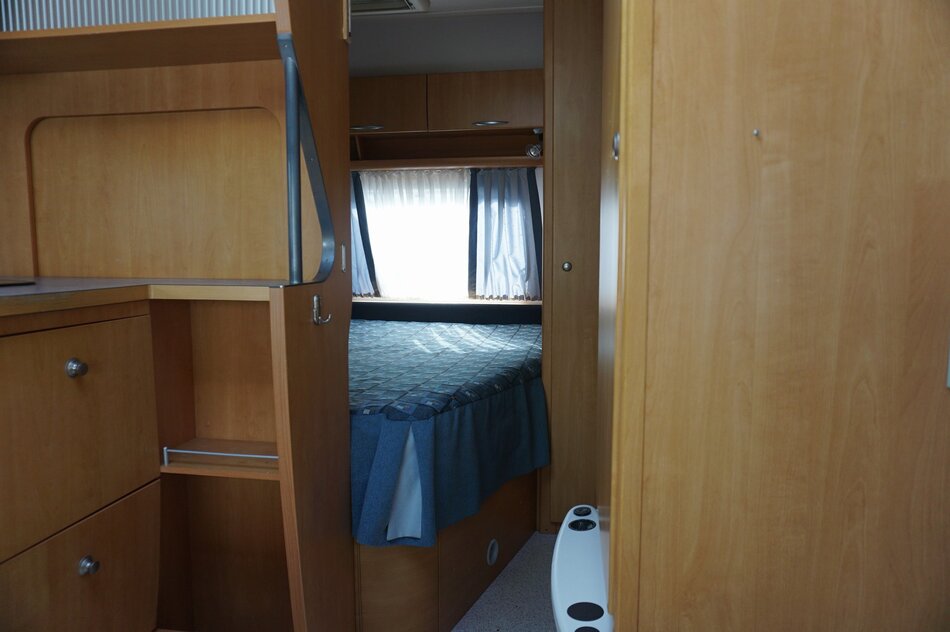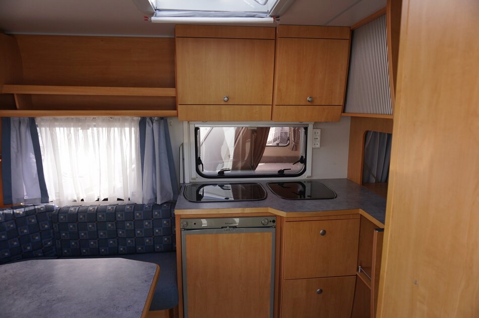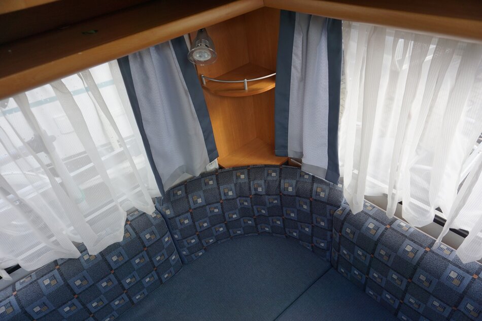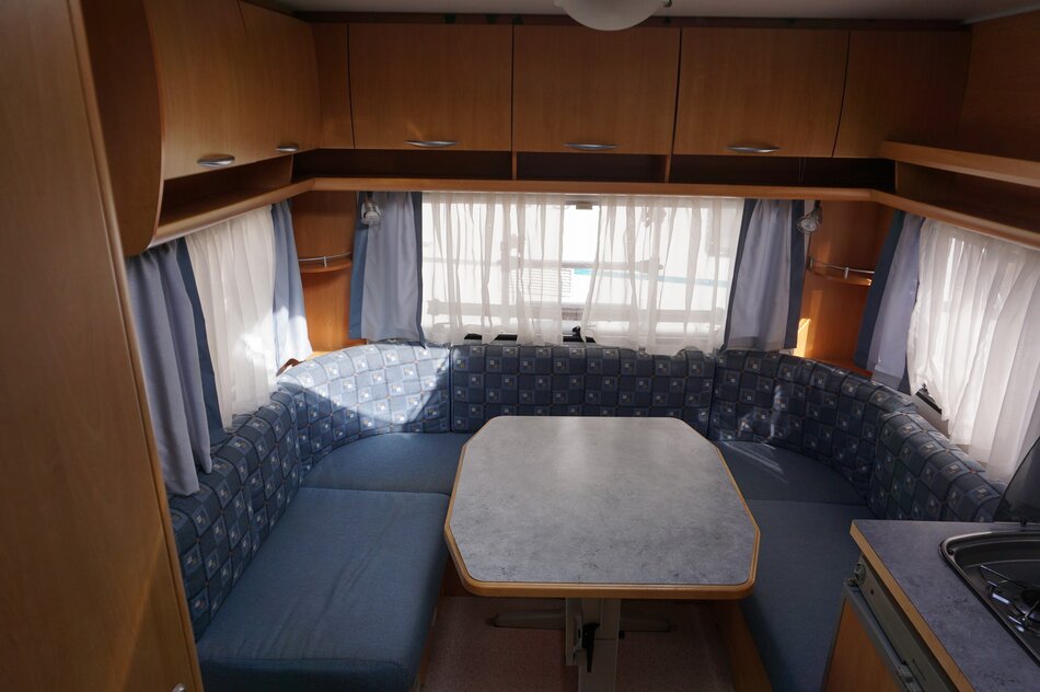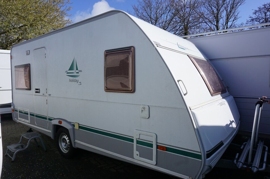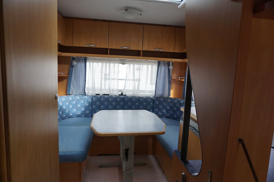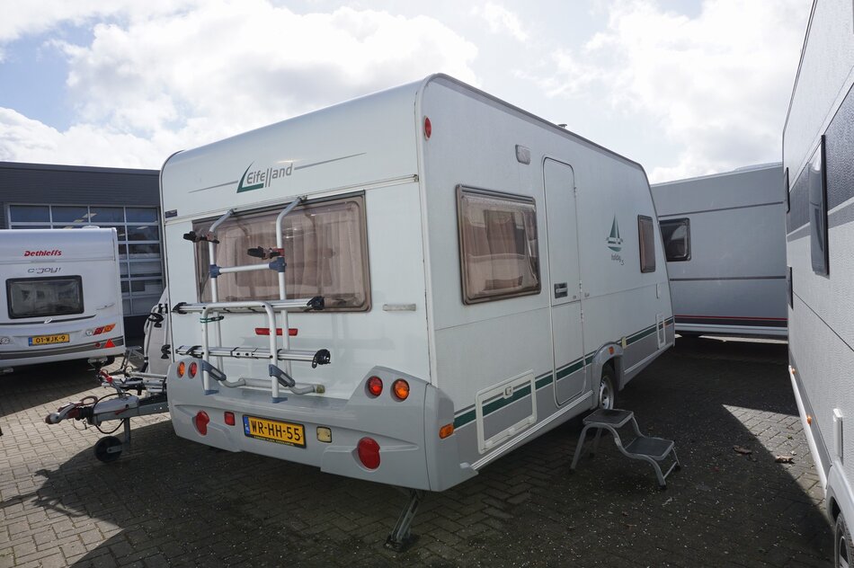 De Eifelland Holiday 465, een ruime 4-persoons caravan, met riante rondzit en een nieuw matras is deze caravan nog voorzien van z.g.a.n. Dorema voortent, fietsendrager voor- en achter, 2x serviceluik, reservewiel.
