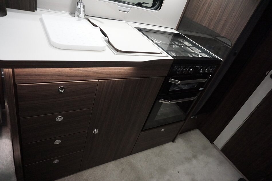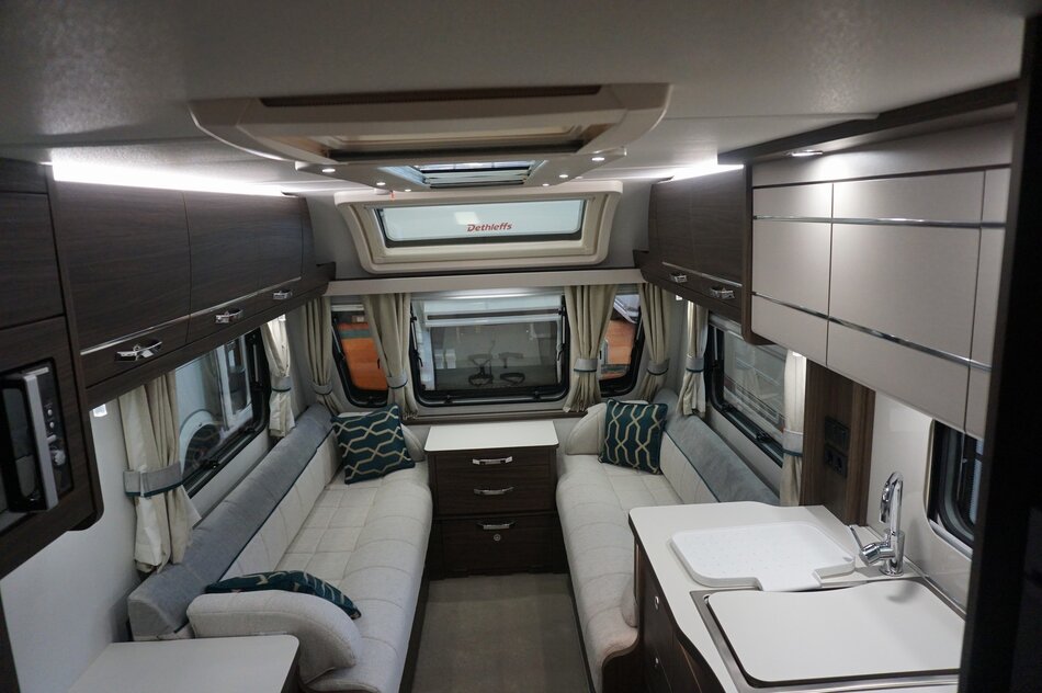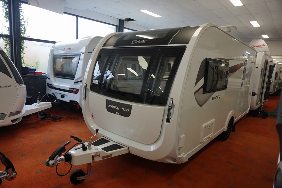 Prachtige luxe uitgevoerde Elddis Affinty 520. 2x aparte aparte bedden met bedverbreding, ideaal i.c.m. Duvalay slaapsysteem. Comfortabele ALDE verwarming en boiler systeem. Luxe ruime badkamer met douchecel. Direct leverbaar!