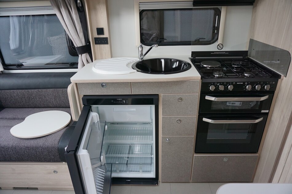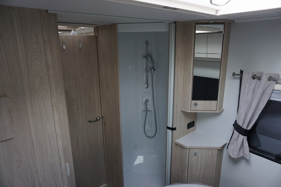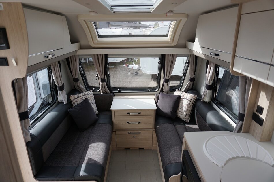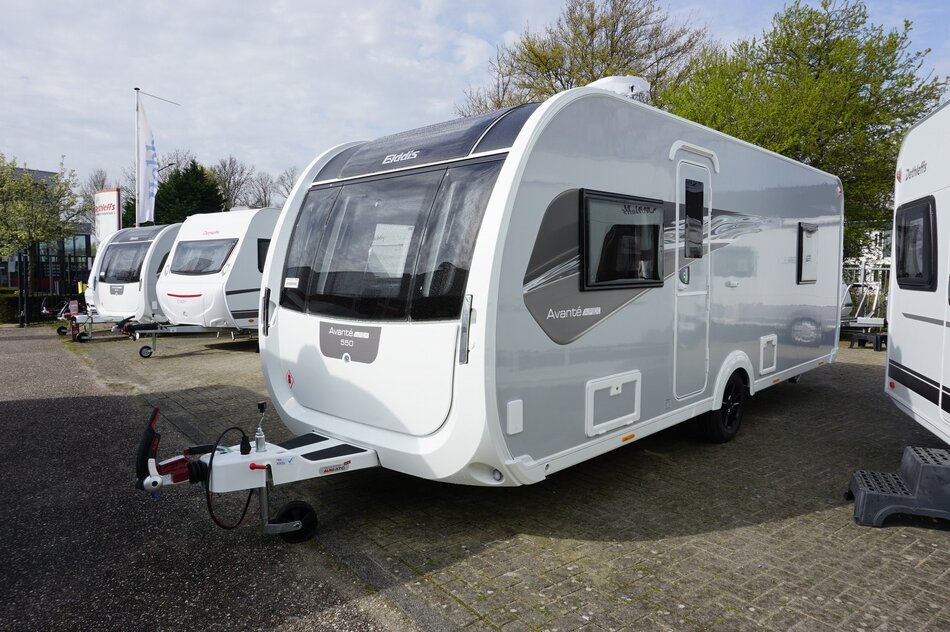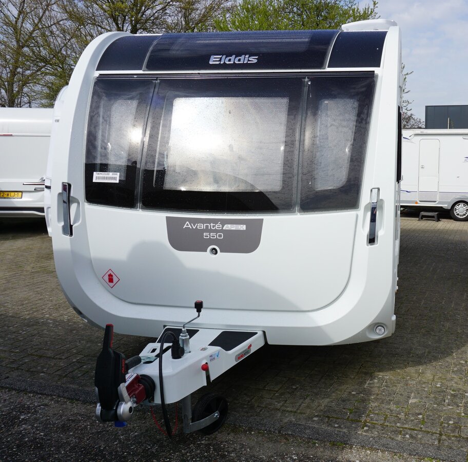 De Elddis Avante Apex 550 is een luxe 4-persoons caravan met standaard ATC-remocorrigerend remsysteem, een badkamer, queensbed, panorama dakraam en dakventilator. Kenmerkend voor deze uitvoering is de gladde diamant zilveren zijwanden aan de buitenkant.