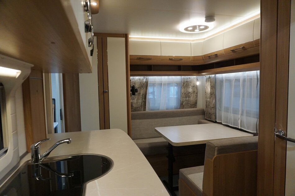 Uitstekend onderhouden Hobby de Luxe 440 SF. Ruime zit, Brede keuken met zeer veel bergruimte. Comfortabel op binnenvering. Enduro mover volautomaat lithium accu, Thule luifel met zijwand. Fietsendrager achter.wiel + beugel.