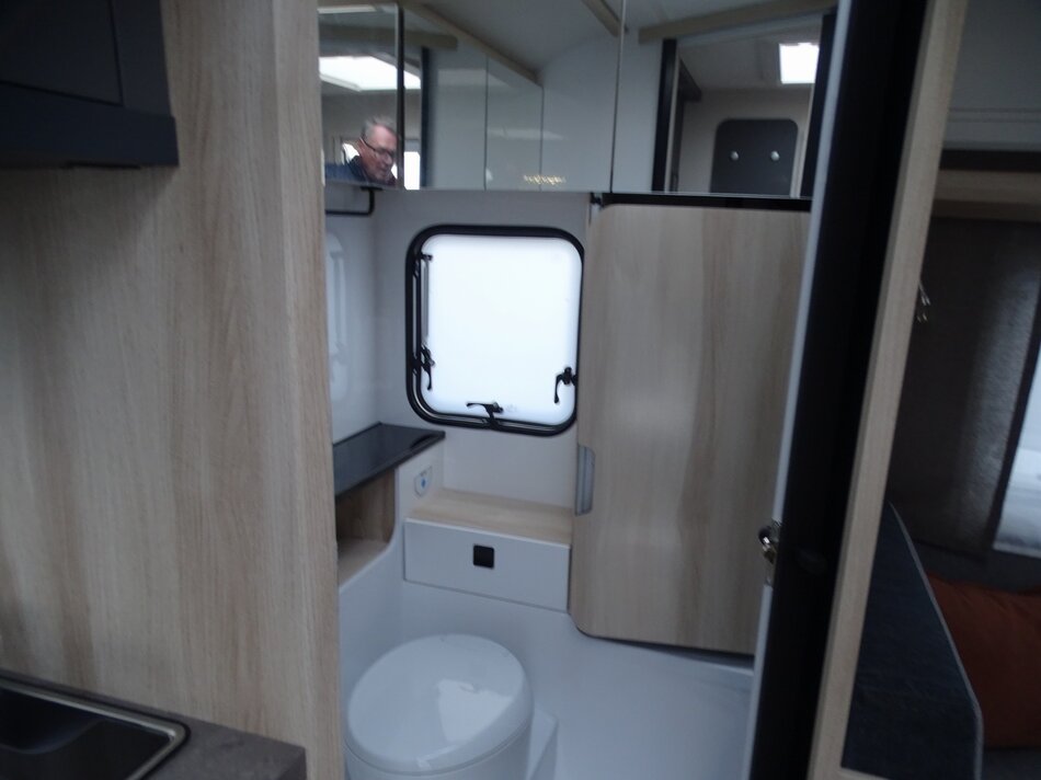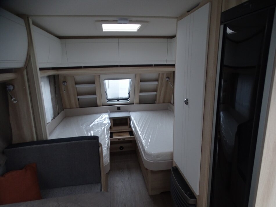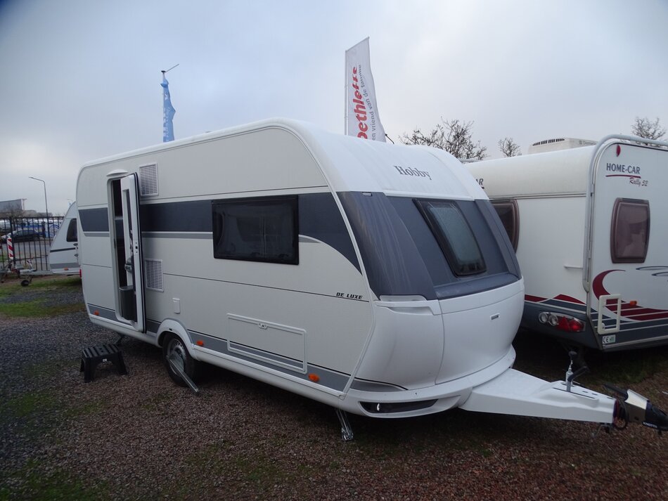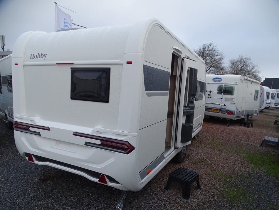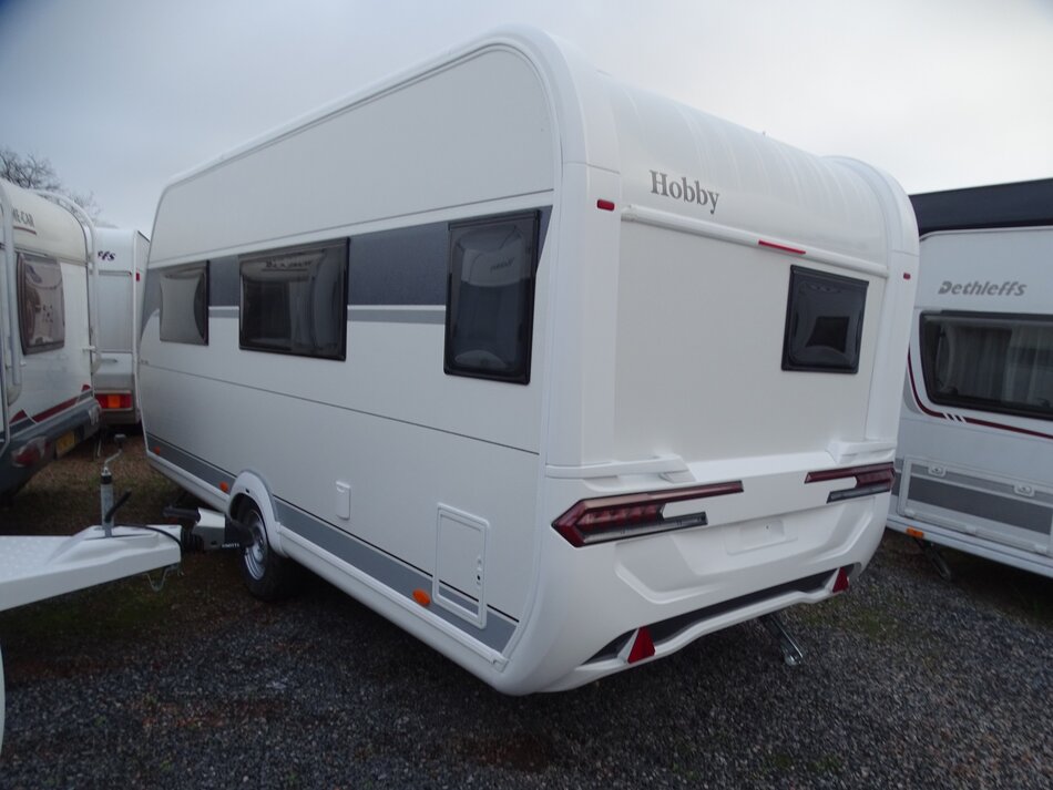 Nieuwe Hobby de Luxe 460 SL 2026. Middenzit, Comfortabele aparte bedden op lattenbodem. Toiletruimte om te bouwen tot douche, boiler 14 ltr. Opties: aslast 1500 kg, wiel + beugel.Bedverbreding.Vloerverwarming. Ambinente verlichting. Prijs incl: opties € 32.460.-