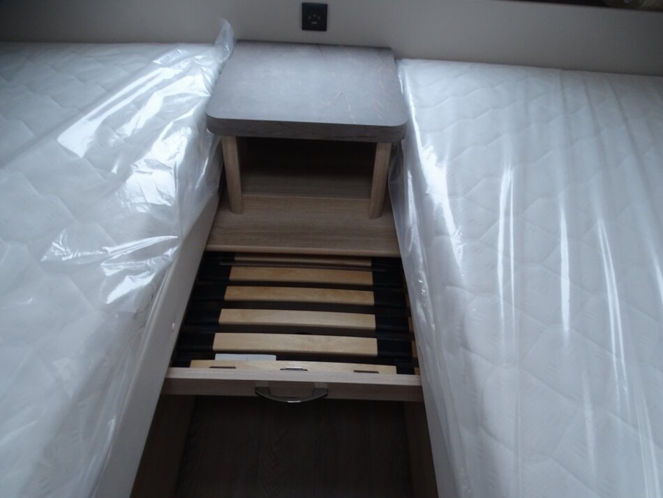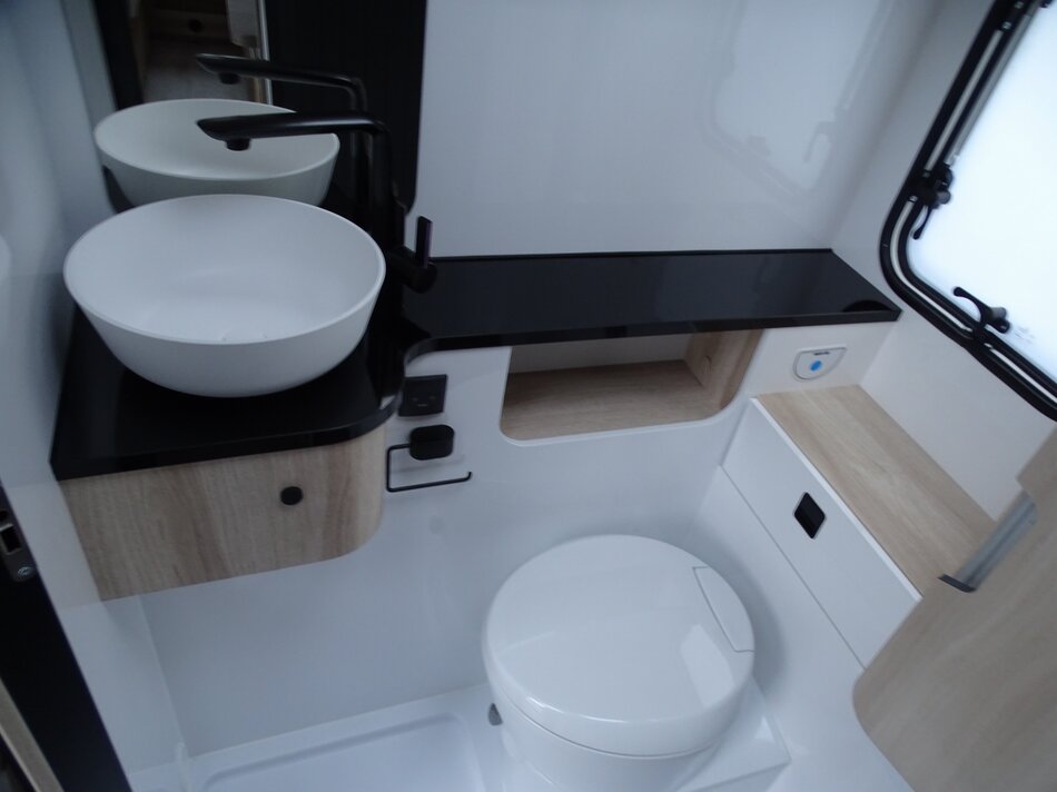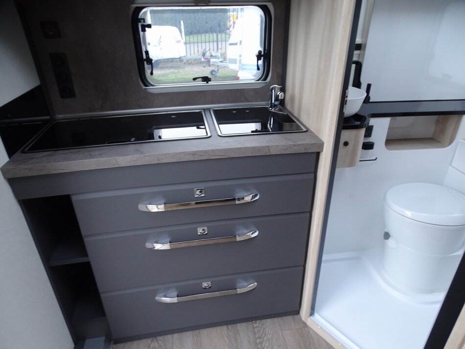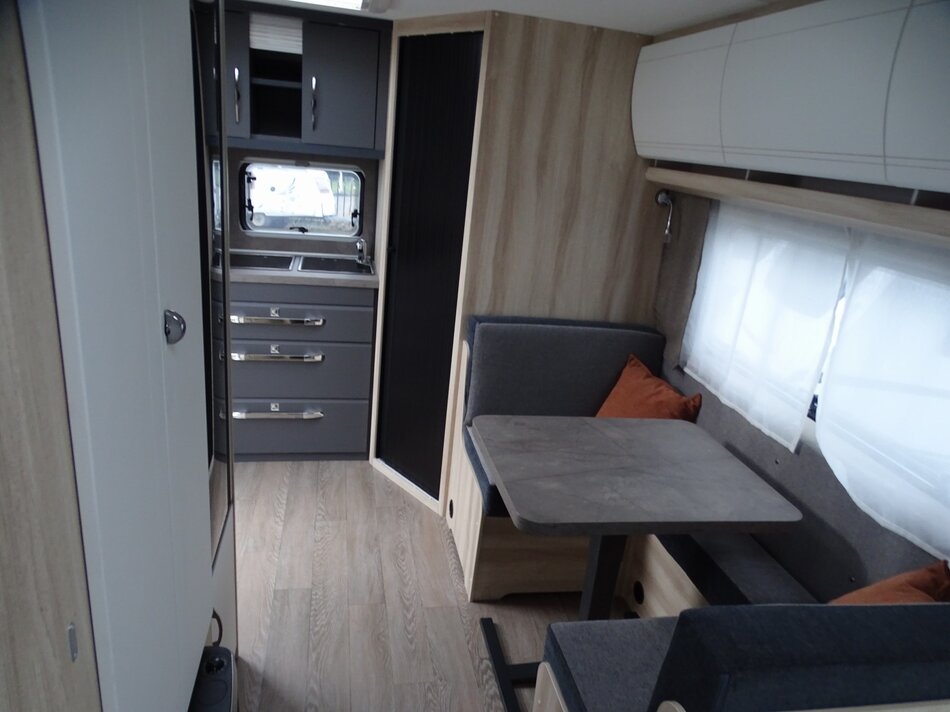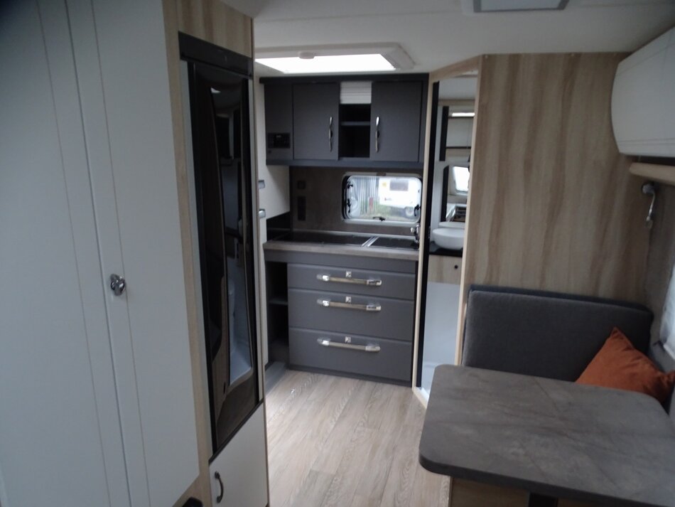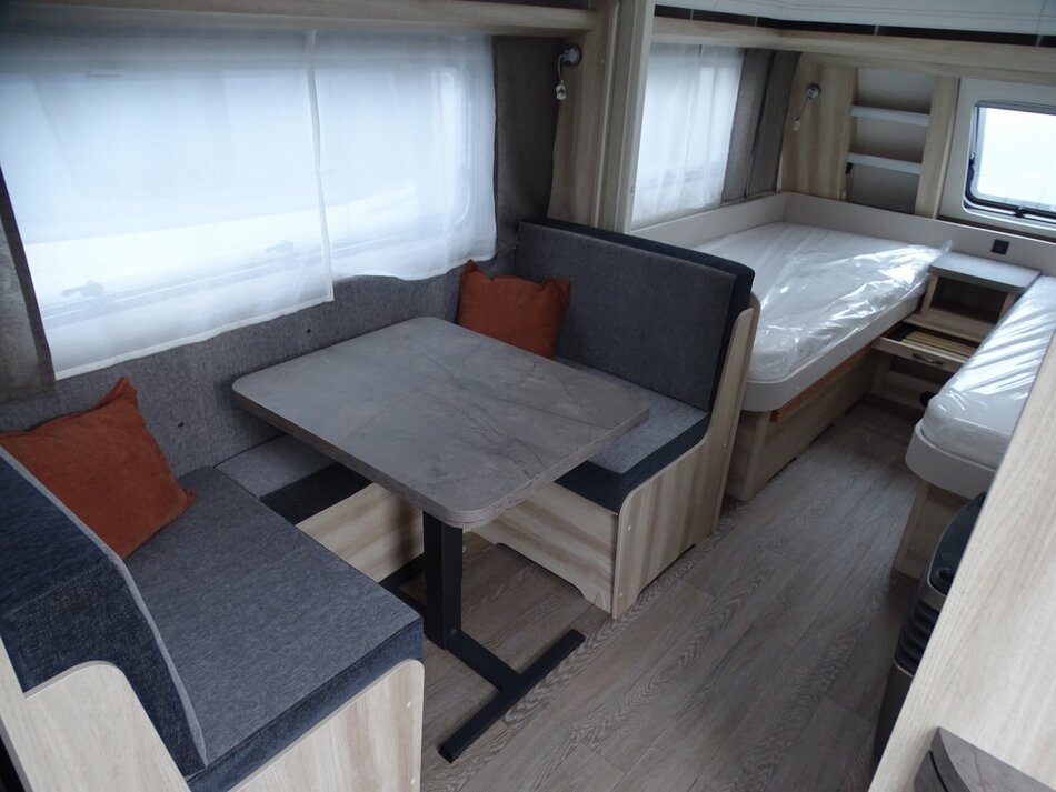 Nieuwe Hobby de Luxe 460 SL 2026. Middenzit, Comfortabele aparte bedden op lattenbodem. Toiletruimte om te bouwen tot douche, boiler 14 ltr. Opties: aslast 1500 kg, wiel + beugel.Bedverbreding.Vloerverwarming. Ambinente verlichting. Prijs incl: opties € 32.460.-
