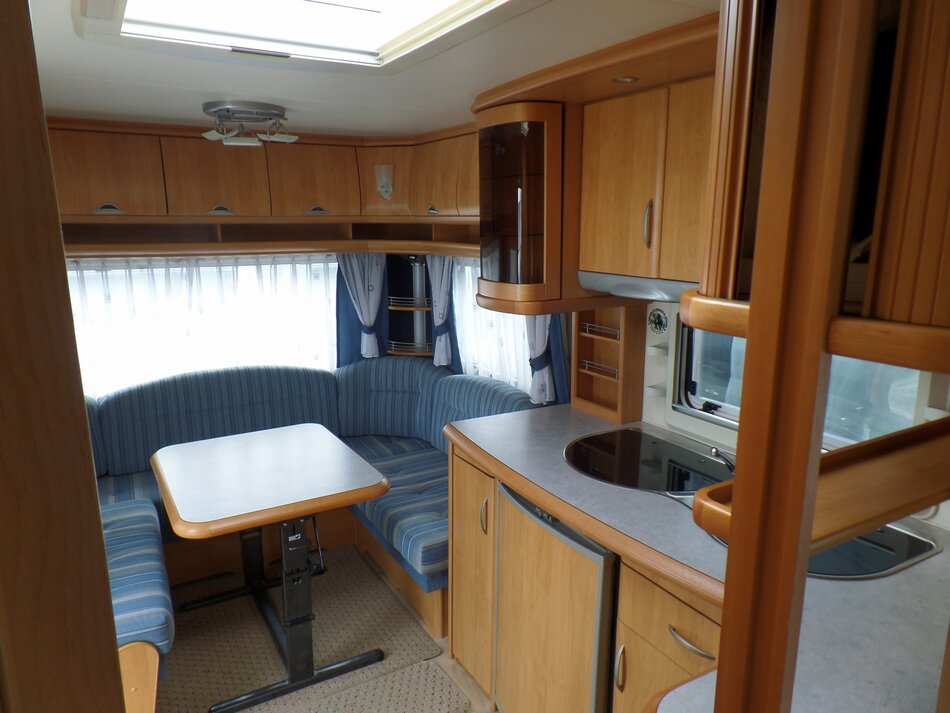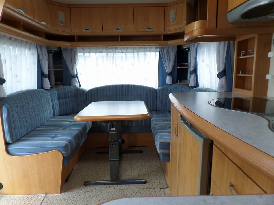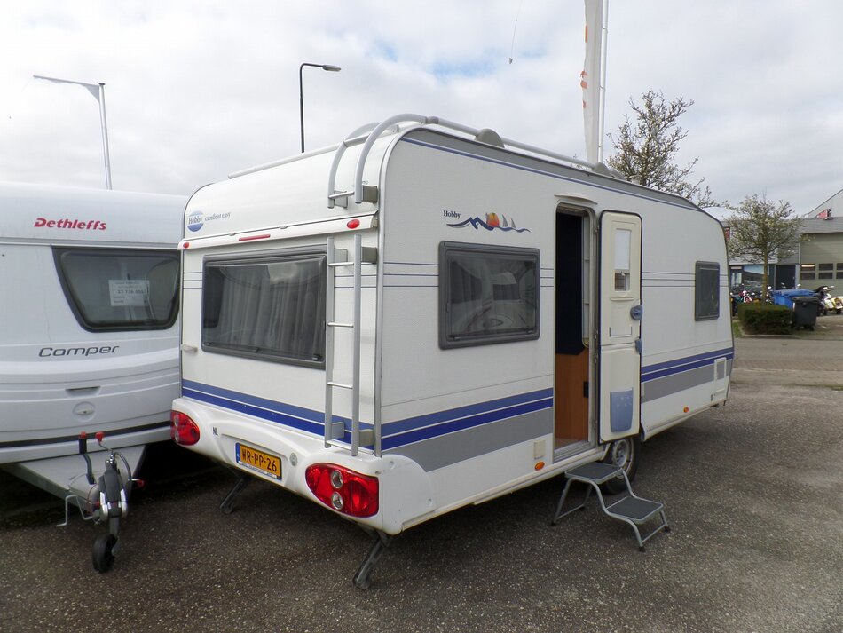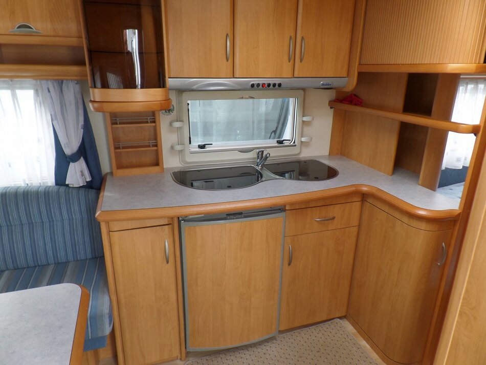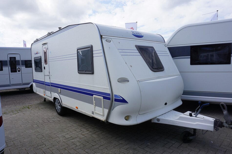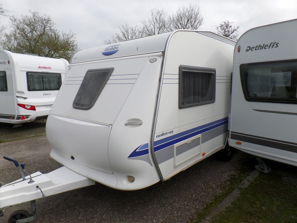 Nette Hobby Excellent Easy 495 UFe. Mooie rondzit, brede keuken met grote koelkast. Comfortabel bed op lattenbodem. Compleet met voortent.
