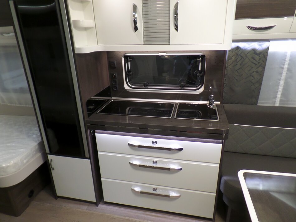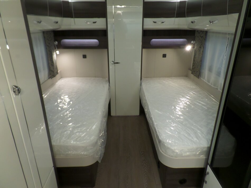 Heerlijke rondzit, grote koelkast( dubbel openslaand). Brede aparte bedden met veel bergruimte.Deze Hobby is uitgerust met de volgende opties: As 2000 KG. Reservewiel met beugel, Dochecabine, Combi 6 E boiler, vloerverwarming en lichtmetalen velgen. Totaal rijklaarprijs € 40.905.-.
