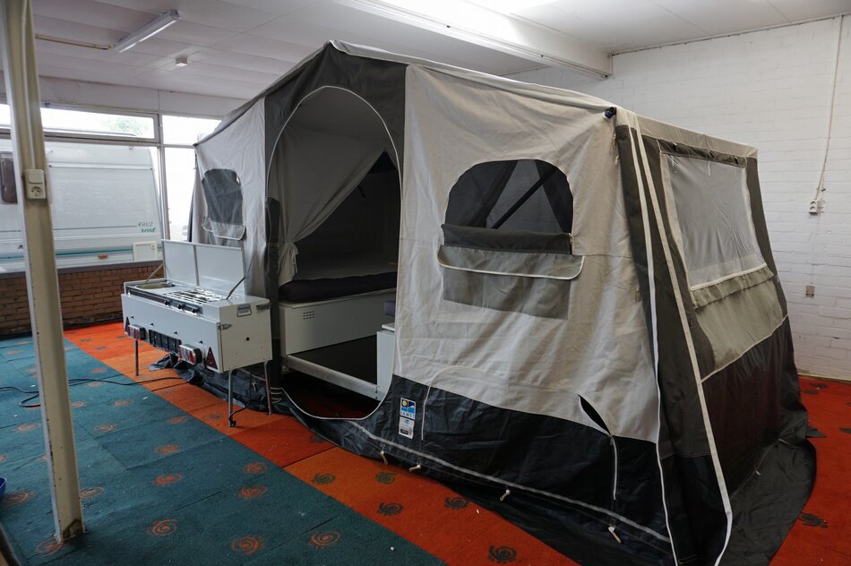 Deze zeer nette Jamet Arizona is een ruime gezinsvouwwagen voorzien van inritsbaar kuipgrondzeil ,4 tot 6 slaapplaatsen, uit te breiden naar 8 dmv ondertentjes. Het dak is gemaakt van synthetisch Ten Cate All Season doek,zelfreinigend en kleurvast. De wanden zijn van ademend acryl voor een prettig leefklimaat.