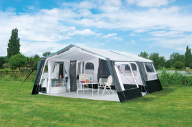 Dit min of meer klassieke Jametic-basismodel heeft een modernere uitstraling gekregen door de nieuwe “ Outdoor “ – boogluifel in een prachtig mooie sportieve vorm. Deze luifel wordt simpel met een doorlopende rits gemonteerd en is met 2,40 m. diepte zeer royaal.
